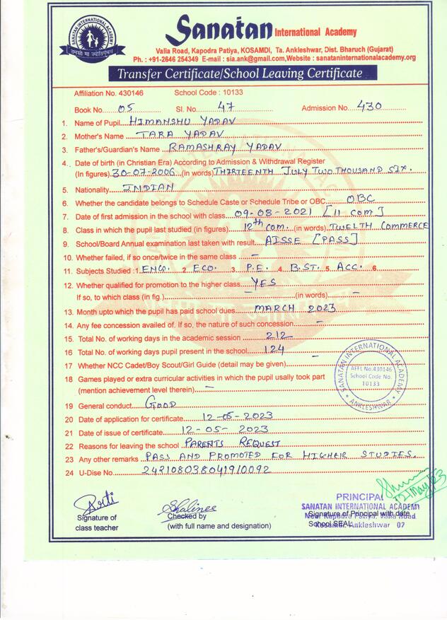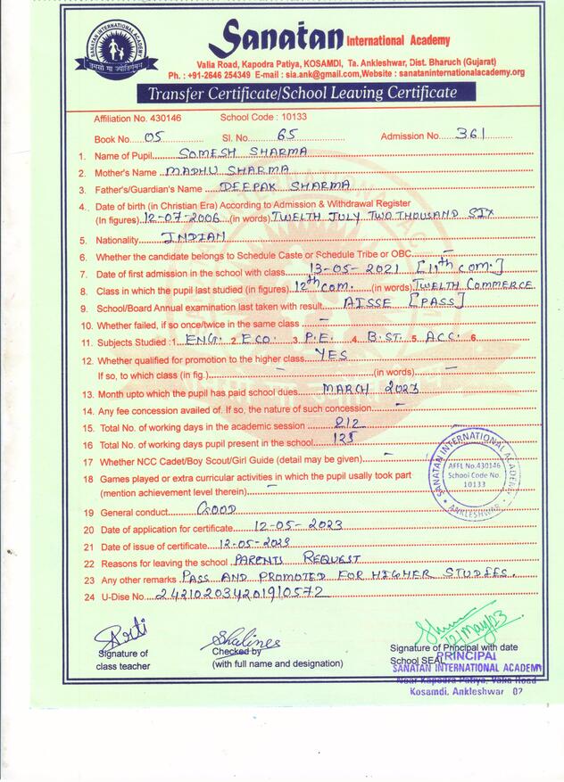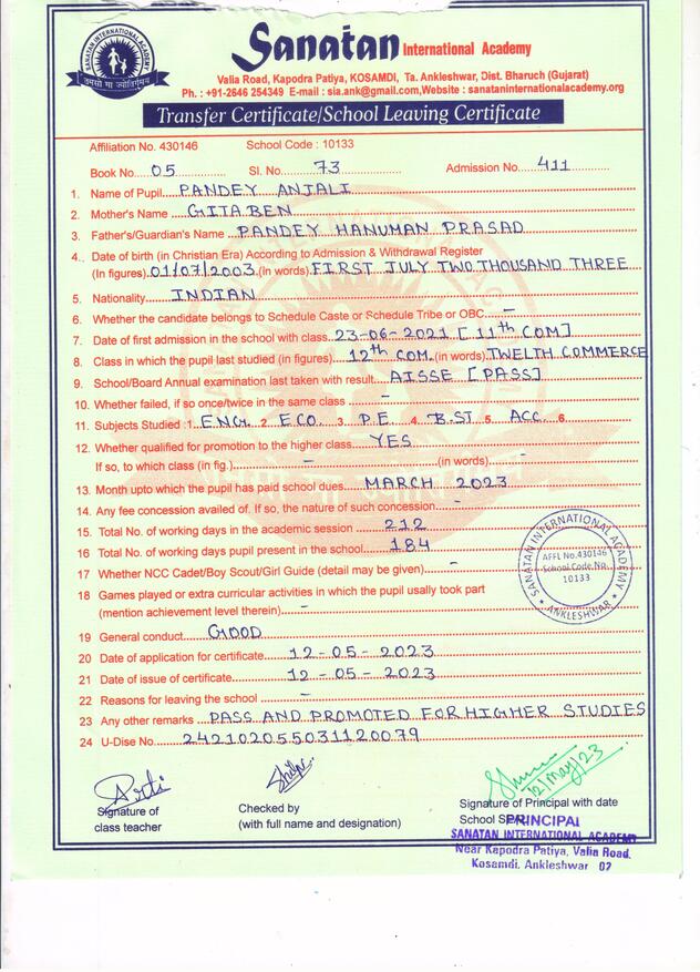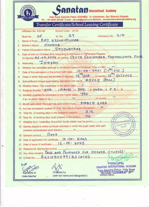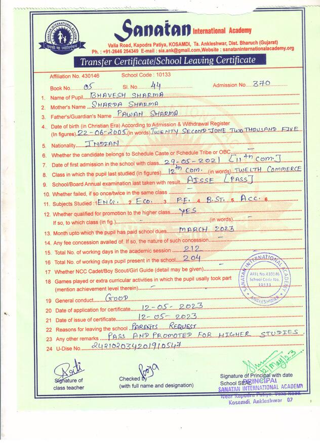 Mail Us: info@sanataninternationalacademy.org | Visit Us: Kosamdi, Near Kapodra Patiya, Valiya Road, Ankleshwar
